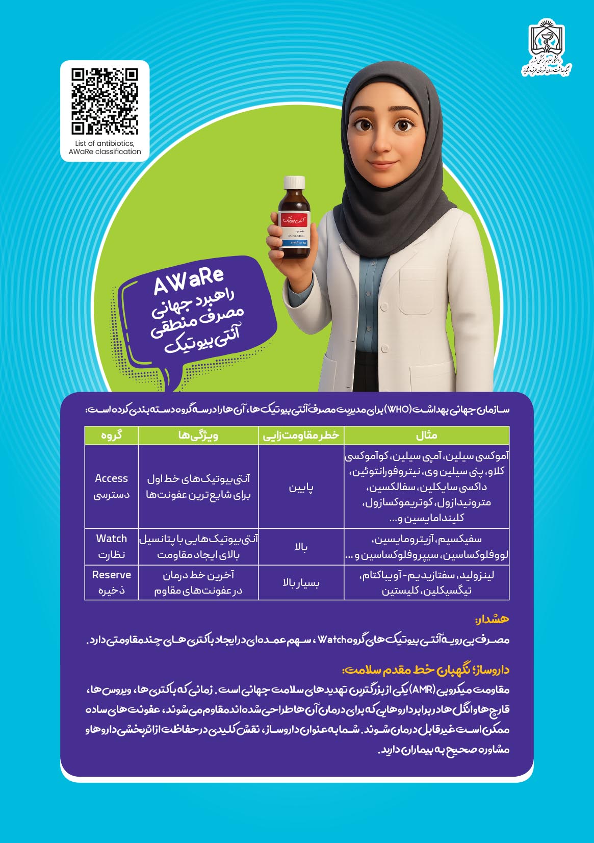 معاونت بهداشت وزارت بهداشت با اعلام شعار سال ۱۴۰۴ هفته جهانی آگاهی از مقاومت میکروبی با عنوان «اقدام فوری، حفاظت از امروز، تضمین آینده» عناوین روزشمار این هفته را اعلام کرد.