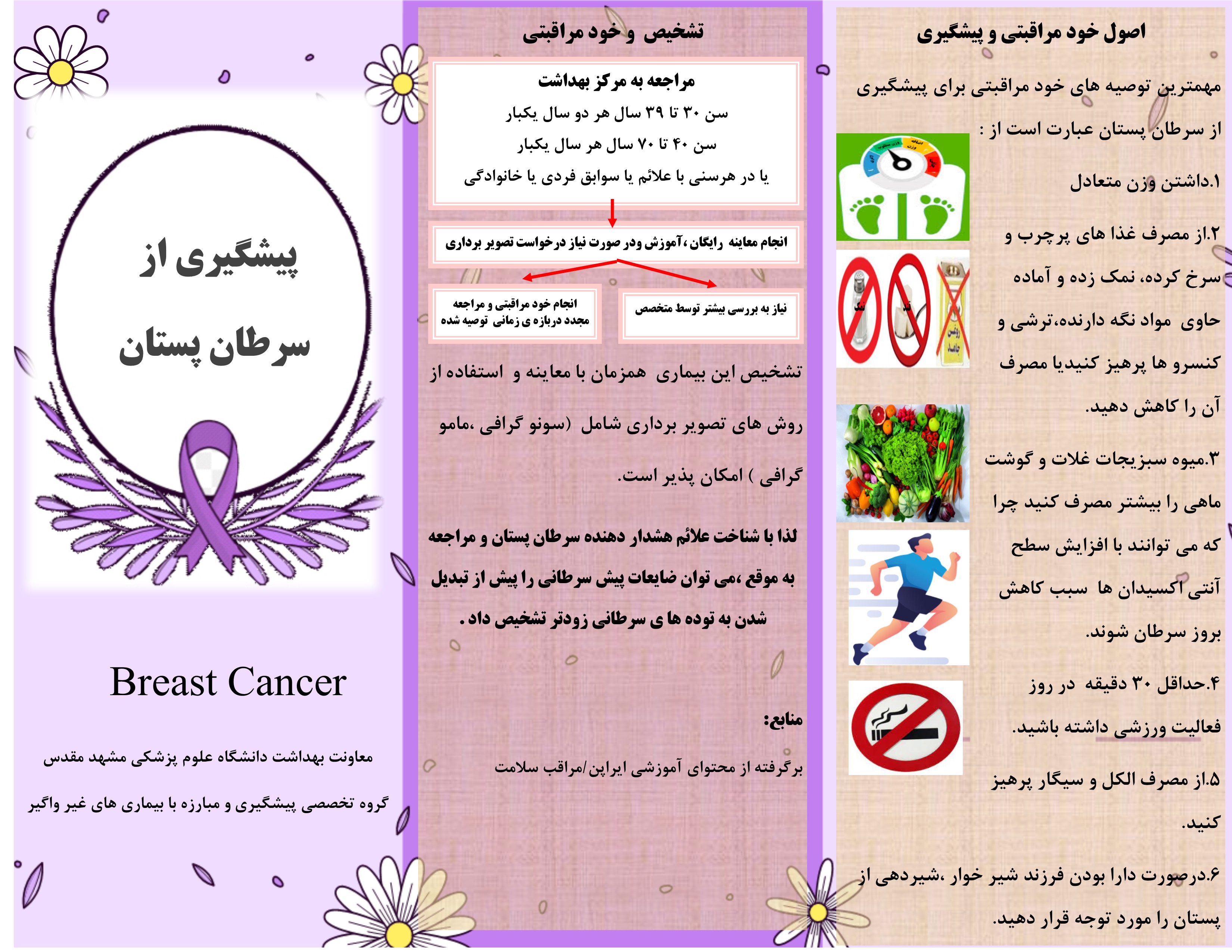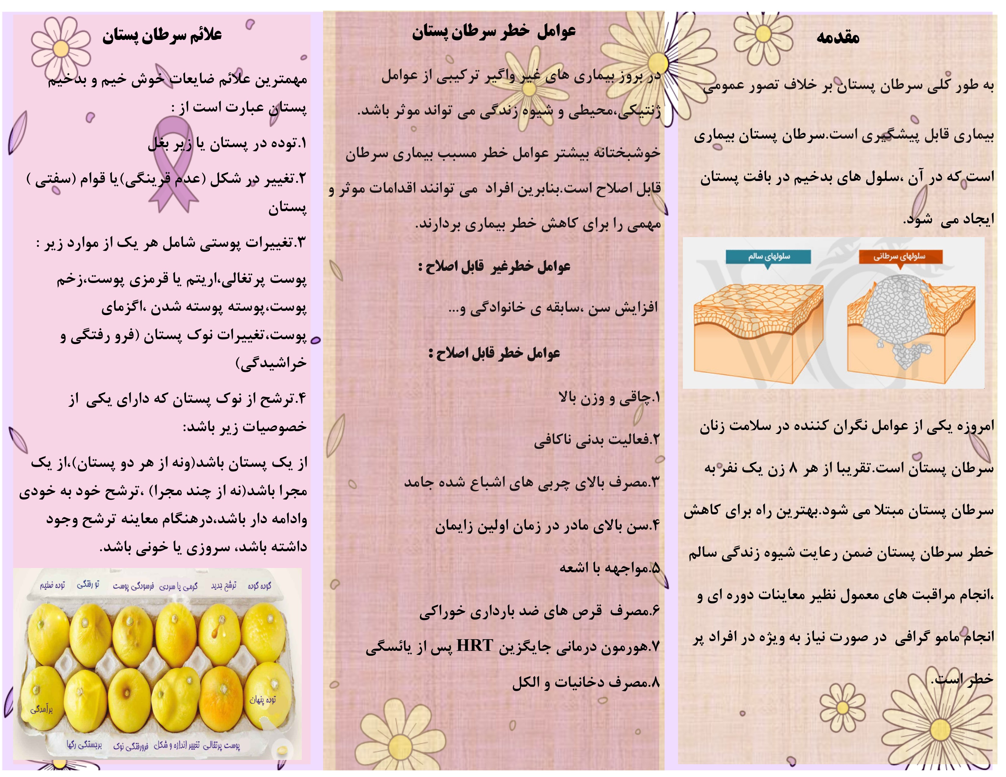 جهت دانلود پمفلت آموزشی پیشگیری از سرطان پستان لطفا روی تصویر کلیک نمایید.