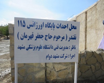 درراستای خدمت رسانی به مردم شریف شهرستان طرقبه و شاندیز در حوزه سلامت و امداد و نجات ،کلنگ ساختمان پایگاه اورژانس پیش بیمارستانی 115 جاده ای در روستای نغندر ازتوابع بخش طرقبه باحضور دکتر دارابی ریاست محترم دانشگاه علوم پزشکی مشهد، دکتر بدیعی معاونت محترم درمان ، دکتر وفایی نژاد مدیر محترم فوریت ها وحوادث واورژانس 115 دانشگاه علوم پزشکی مشهد ، دکتر دهقان نماینده محترم مردم در مجلس شورای اسلامی، مهندس حسینی فرماندار محترم طرقبه و شاندیز، ائمه جمعه، شوراها و دیگر مسئولین دوایر دولتی به همراه اهالی روستای نغندر، به زمین زده شد.