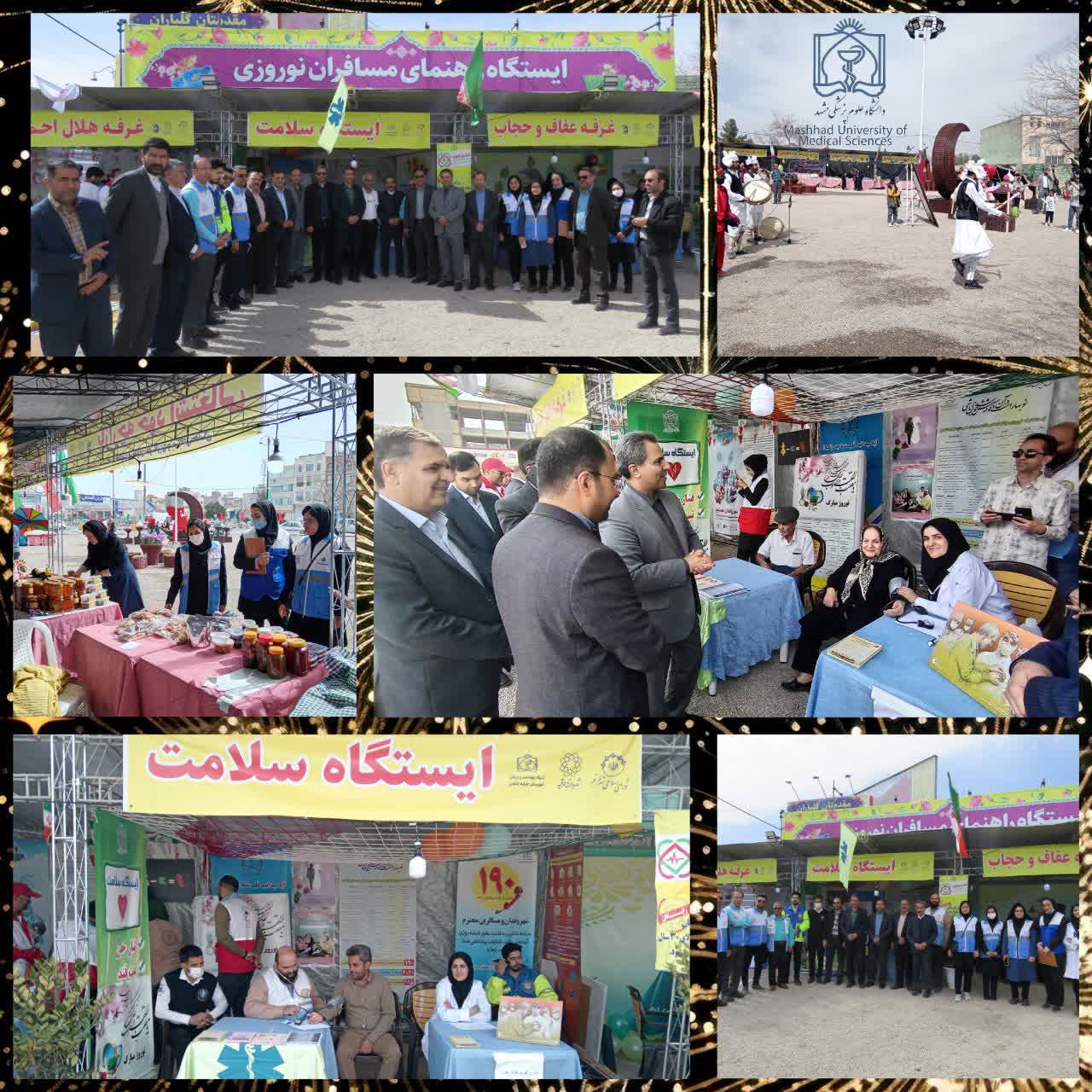 ایستگاه سلامت شبکه بهداشت و درمان شهرستان طرقبه شاندیز با هدف خدمت رسانی به مسافران در محل ایستگاه راهنمای مسافران نوروزی مستقر گردید. قابل ذکر است در این ایستگاه کنترل فشار خون ، راهنمای های بهداشتی در زمینه های مختلف ،توزیع تراکت وپمفلت های بهداشتی در مباحث گوناگون برای مراجعین انجام می پذیرد.